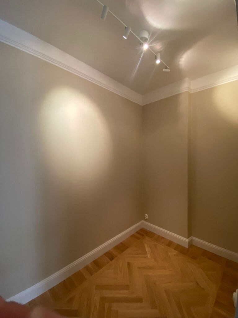 Målning av väggar och tak samt tapetsering. Kunden fick ett helt nytt intryck av sitt hem.
